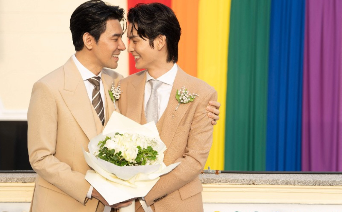 Among the first to marry were prominent actors Sappanyoo "Arm" Panatkool and Apiwat "Porsch" Apiwatsayree, who received their pink-bordered marriage certificates at a registry office in Bangkok.
